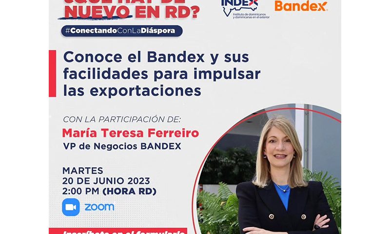 ¡Buenas noticias para los #DominicanosEnElExterior! En el próximo encuentro de «¿Qué Hay de Nuevo en RD?» conocerás al @bandex.rd (Banco de Desarrollo y Exportaciones) y sus facilidades para impulsar las exportaciones. ️ Martes 20 de junio 2023 ⏰2:00 PM (hora RD). Inscríbete en el enlace de la biografía de @INDEXDOMRD o en index.gob.do/links ¡Te esperamos! #INDEXDOMRD